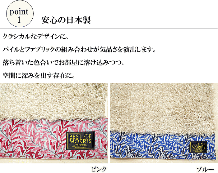 素材 パイル:アクリル60%綿40% 生地:綿100%(ヘビーオックス) お手入れ方法 ※洗濯ネット使用の上、品質表示に従って洗濯してください(ドラム式洗濯機不可) 生産国 日本製 ここがおすすめ!! お手頃価格でウイリアムモリスのマットご用意いたしました。