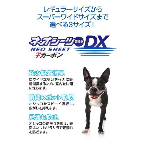 お店TOP>犬用品>ペットシーツ・犬のトイレ用品>ワイドシーツ>ネオシーツ カーボンDX スーパーワイド 超厚型&炭シート (18枚入*4コセット)【ネオシーツ カーボンDX スーパーワイド 超厚型&炭シートの商品詳細】●長時間使用のハイスペック●炭で臭いを強力吸着消臭●超厚型タイプ●スーパーワイドサイズ(60*90cm)●使用目安:中型犬3〜4回分/大型犬1〜2回分【ネオシーツ カーボンDX スーパーワイド 超厚型&炭シートの原材料】表面材:ポリオレフィン不織布給水剤:綿状パルプ、カーボン紙(炭)、高分子吸収材防水材:ポリエチレンフィルム結合材:ホットメルト粘着剤【規格概要】対象:犬・猫サイズ:約60*90cm吸収体サイズ:約55*85cm【注意事項】★